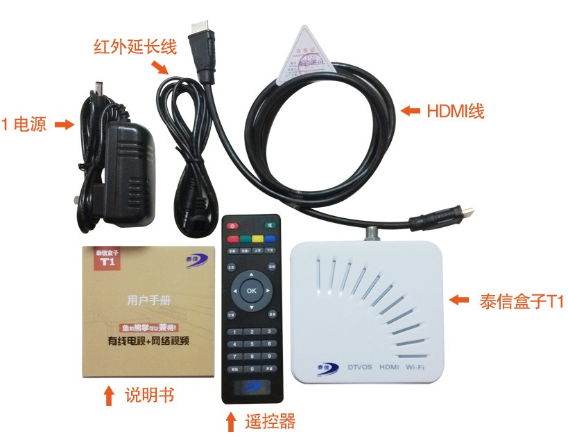 配件方面,包括泰信盒子T1DC適配器,紅外擴展線,遙控器以及一條1米長的HDMI高清線。別的不說,光這條HDMI高清線怎么也得30塊,可見泰信電子做得是相當厚道。