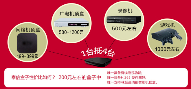 在大同小異的網絡機頂盒中,泰信盒子的有線直播功能優勢凸顯,作為第四代機頂盒的代表,既能當廣電機頂盒用,又能當網絡機頂盒用,沒有變磚頭的風險,是方便老百姓看電視的首選。面對單純的網絡機頂盒或廣電機頂盒,您有換掉的沖動吧?