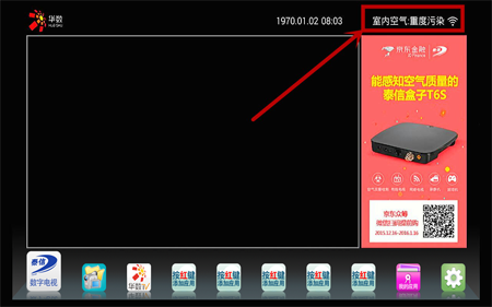 泰信盒子的UI界面一直是走簡約路線,凸顯有線電視特色。正版網絡視頻牌照方華數TV的內容,穩定流暢,更新速度也不錯。泰信盒子首頁的時間顯示在連接網絡后才會正確顯示??諝赓|量監測功能是T6S的一大賣點。T6S屬主流配置,WIFI信號接收能力強勁,視頻和音頻解碼能力出眾。