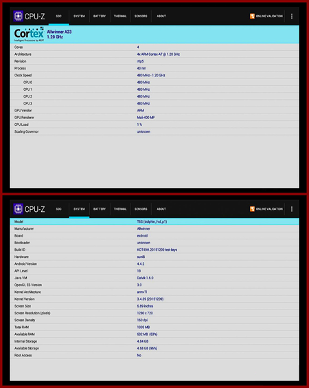 T6S采用了全志四核H3芯片方案,Mali-400MP GPU,1G運存,8G閃存,安卓4.4.2操作系統。