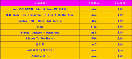 音頻測試結果如下。T6S的音頻解碼能力相當給力,測試音頻樣本全部完美通過,支持包括DTS和各種無損音頻在內的大部分主流格式音頻文件。