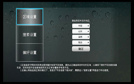 在區域設置中選擇本地區信息設置保存后,自動進行本地節目的搜索下載。