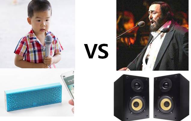 小個子的藍牙音箱與HiFi對箱比較,就像一個又矮又瘦的人,想與帕瓦羅蒂比唱功那樣,沒有任何可比性。