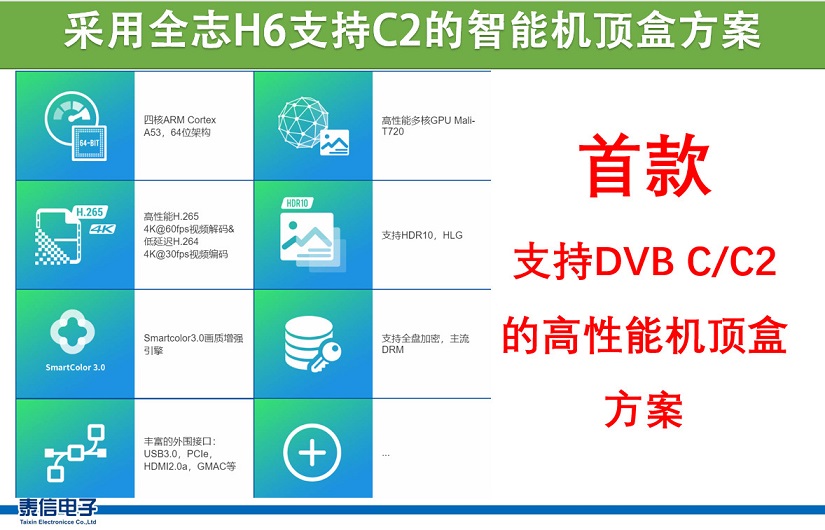 基于全志H6數(shù)字電視SoC方案全面支持多通道DVB C2