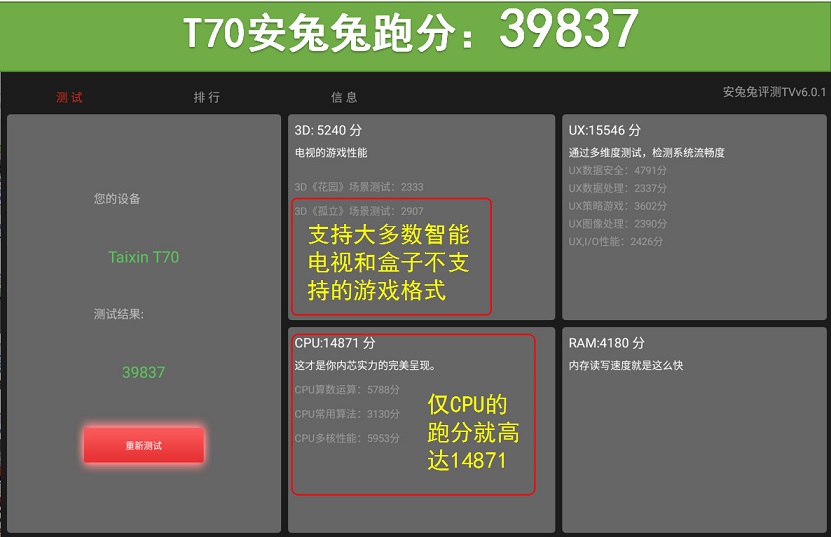 T70的安兔兔跑分也是技壓群芳,接近4萬!