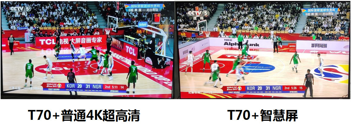 在連接T70收看圖像快速運動的體育頻道時,智慧屏的運動補償似乎沒有發揮作用,也沒有找到菜單中開啟運動補償的開關選項,有待今后慢慢研究。