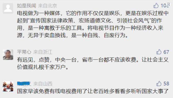在《政府采購(gòu),老百姓看電視免費(fèi),重啟有線電視公共服務(wù)屬性!》一文中的網(wǎng)友留言中你會(huì)看到,人們對(duì)這一觀點(diǎn)有強(qiáng)烈的認(rèn)同感