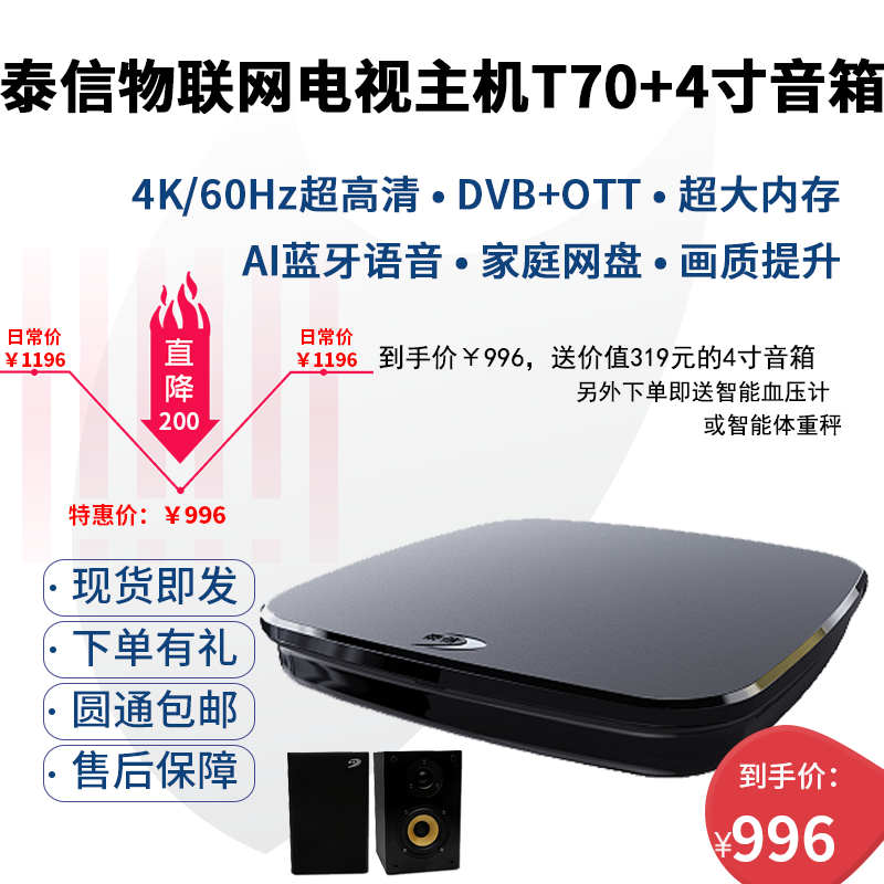 套餐一:送智能血壓計(這款血壓計是泰信自主研發的,一鍵測量、智能加壓,可以語音播報并查看歷史測量數據)!
